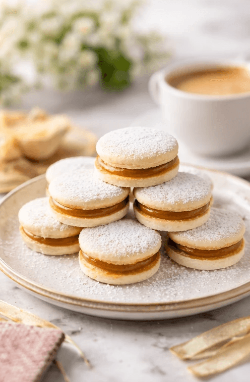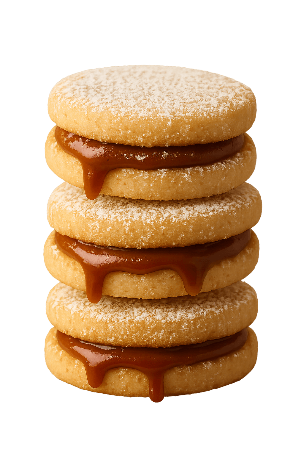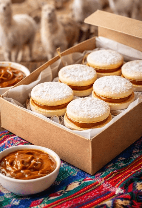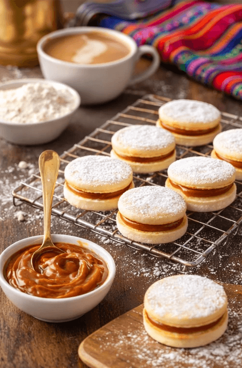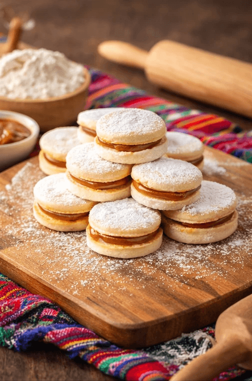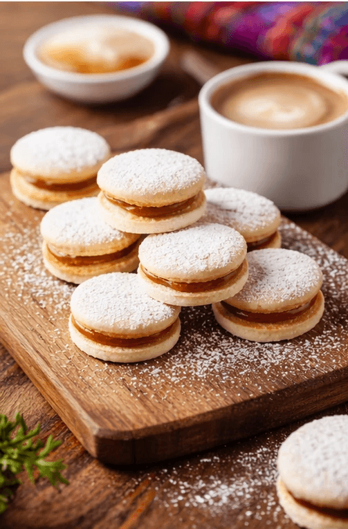 Mjuk och traditionell peruansk alfajor fylld med len dulce de leche.